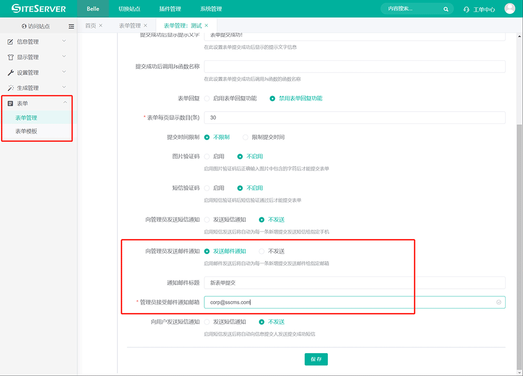 当前台表单有新提交时,系统将自动发送通知邮箱。
