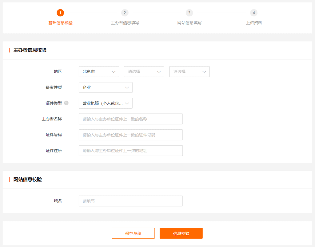 主办单位或主办人名称:需要和域名持有者的实名认证信息保持一致(如姓名、证件类型、证件号码等均需一致)。