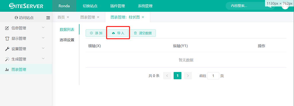进入 图表管理 菜单并点击上一步中创建的图表名称,进入数据列表管理界面:
