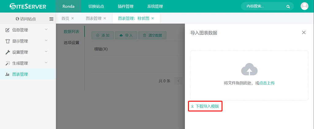 点击 导入 按钮,在弹出的导入图表数据界面中下载导入模版:
