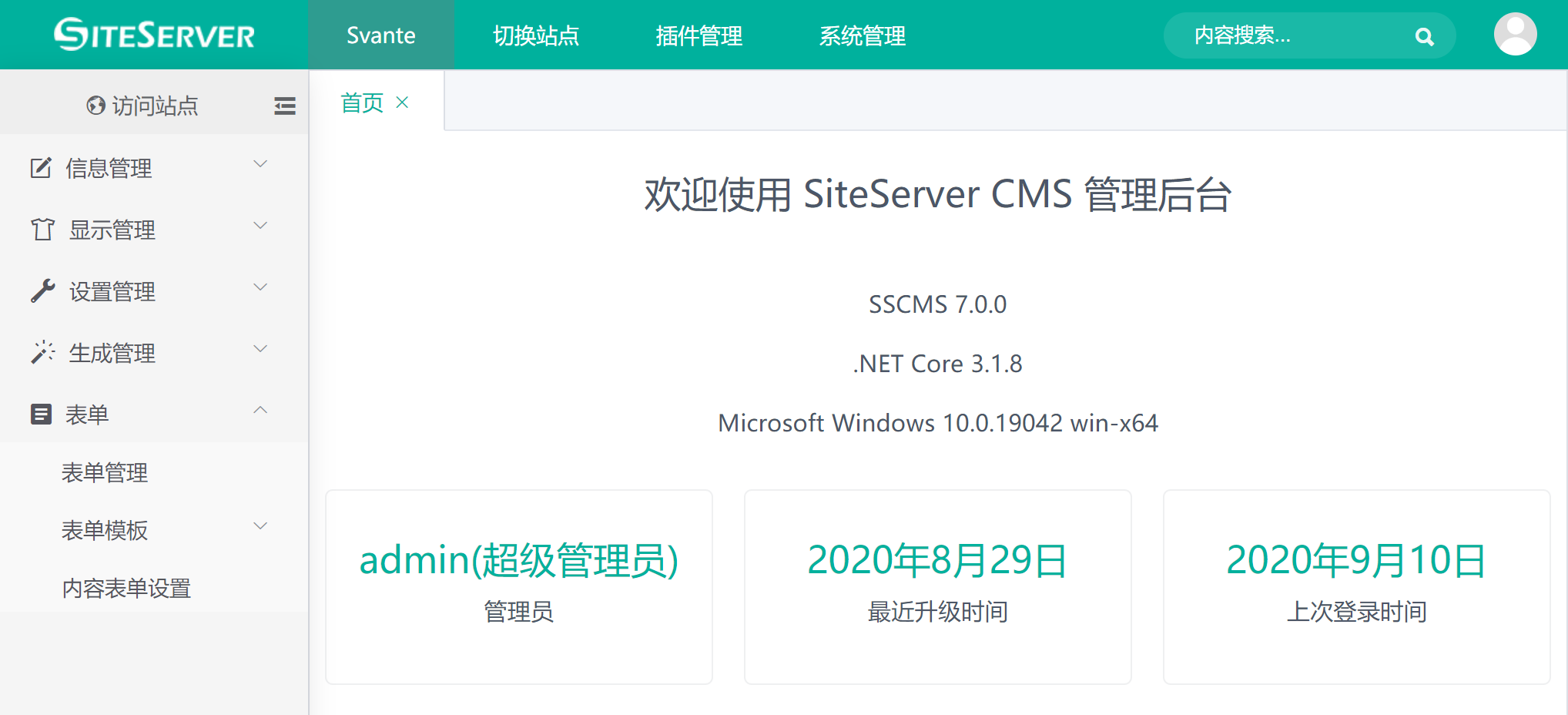 可以访问插件主页 https://sscms.com/plugins/plugin.html?id=sscms.form (opens new window) 获取插件详细信息。