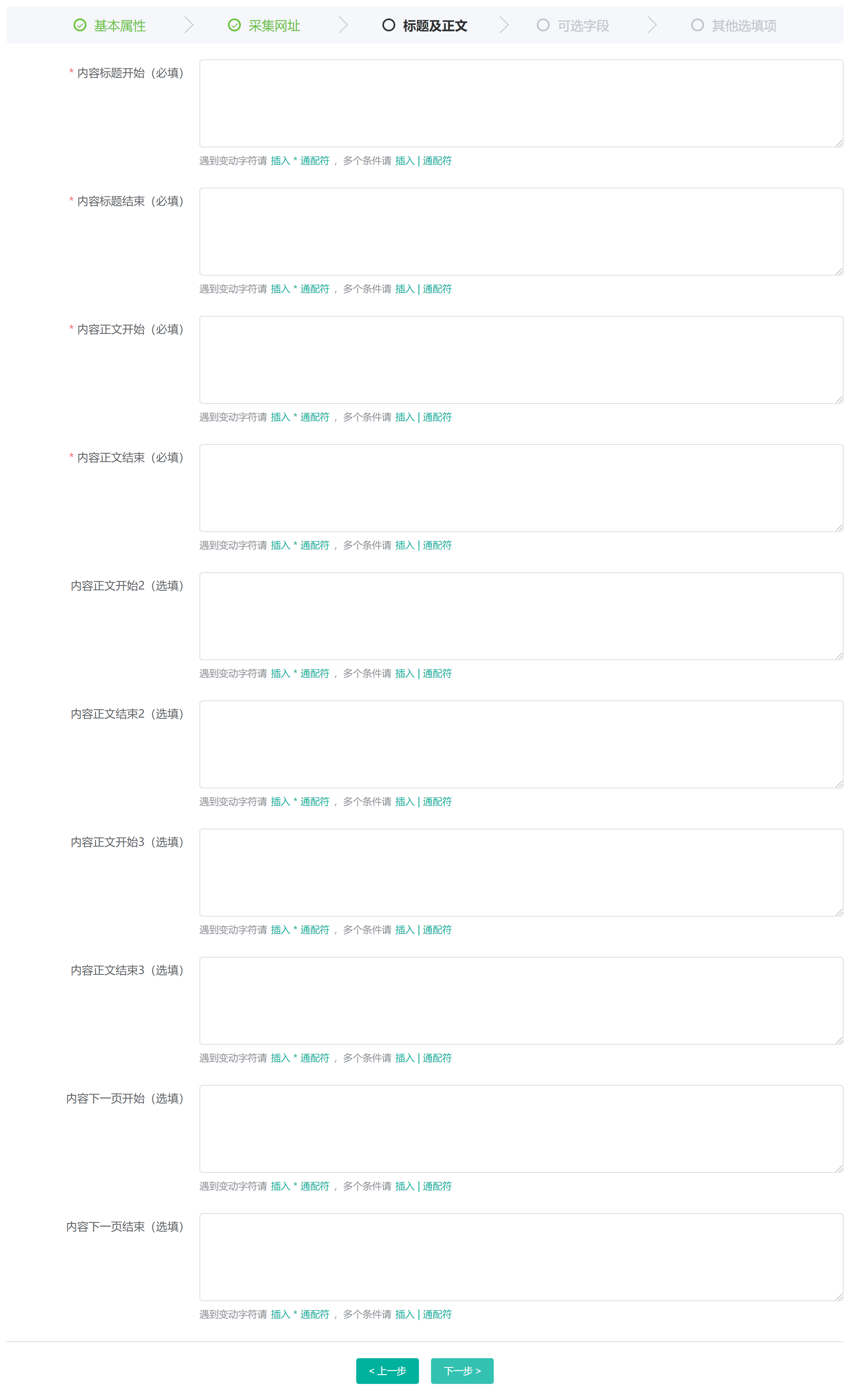 标题及正文用于设置标题及内容正文的采集规则,如下图:
