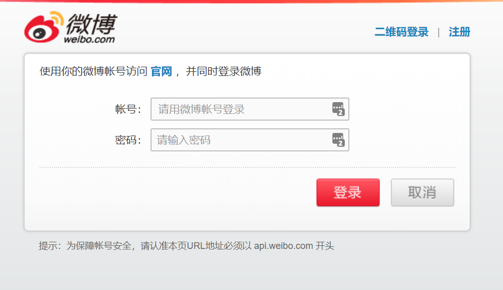 新浪微博登录首先需要配置第三方登录参数,请参考: