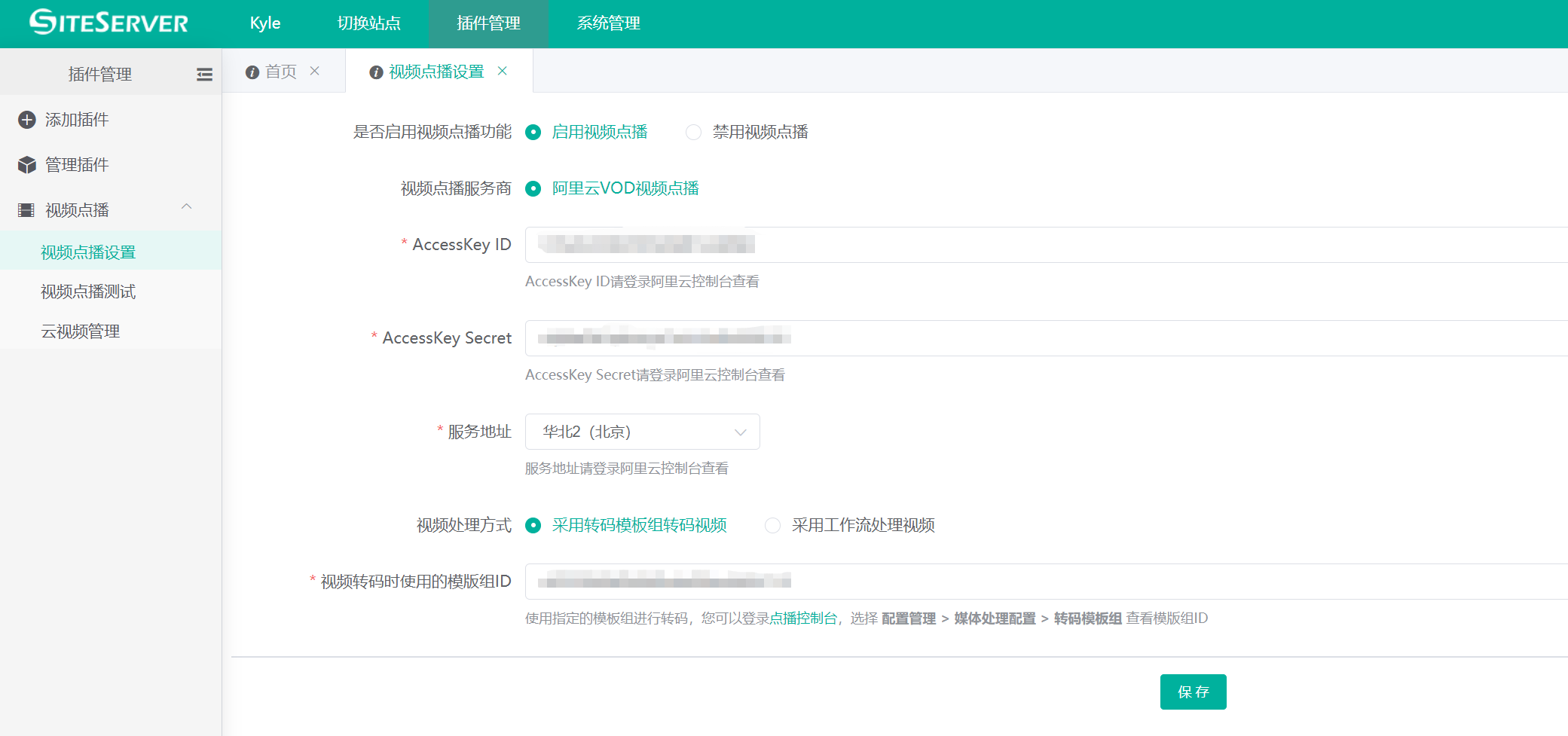 完成开通阿里云视频点播服务后,就可以进入视频点播插件进行参数设置了,设置完毕参数后视频点播插件才能够正常工作。