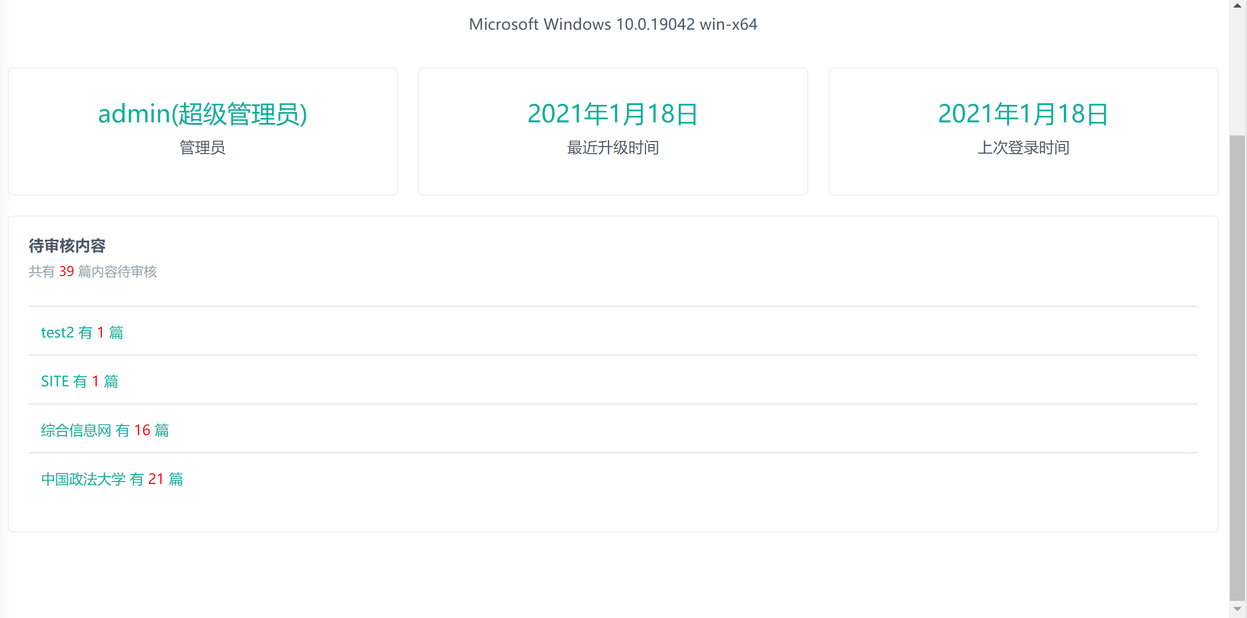 - 后台登录后显示站点待审核内容数量 - 新增V6版本后台登录后显示站点待审核内容数量功能。