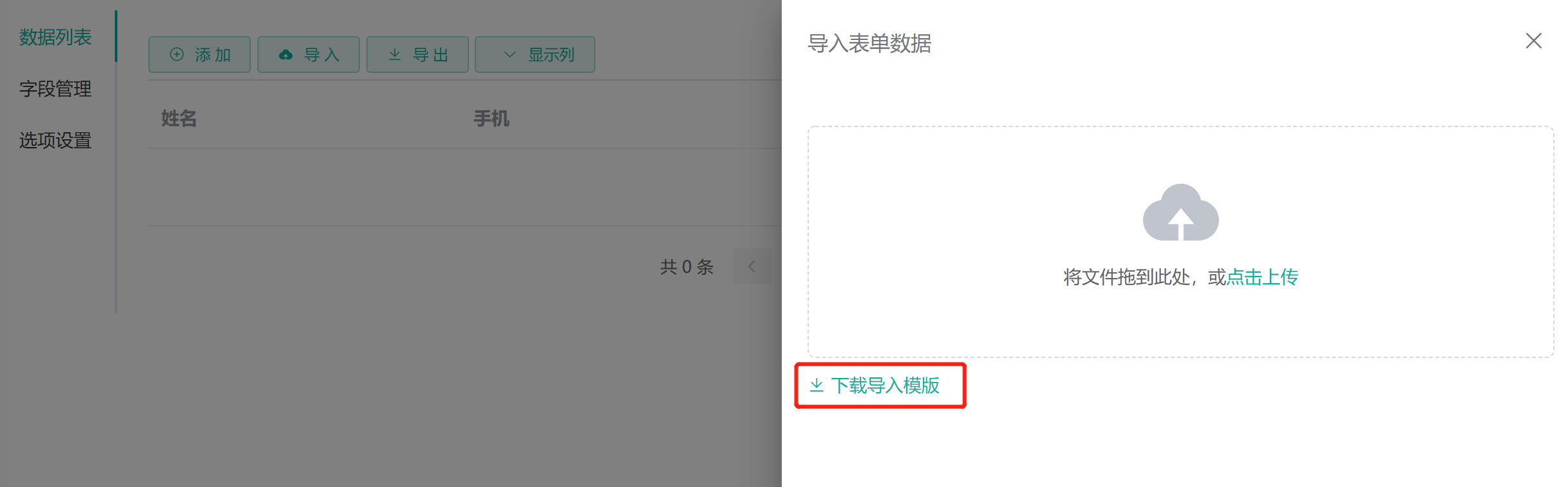 表单插件新增了 Excel 数据导入功能,在数据列表界面添加了点击导入按钮: